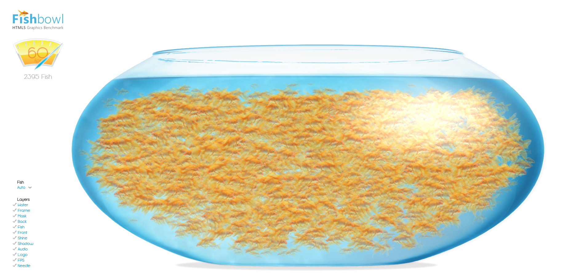 해당 사이트는 GPU를 사용하여 60 프레임으로 금붕어가 최대 몇 마리까지 보이는지