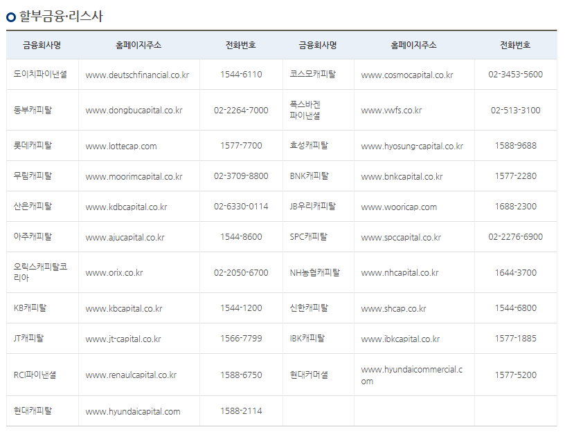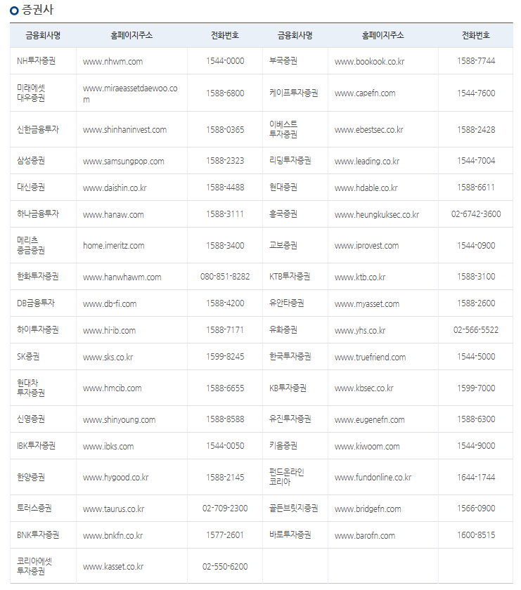 상기에 나와있던 금융사들이 전부 나옵니다.