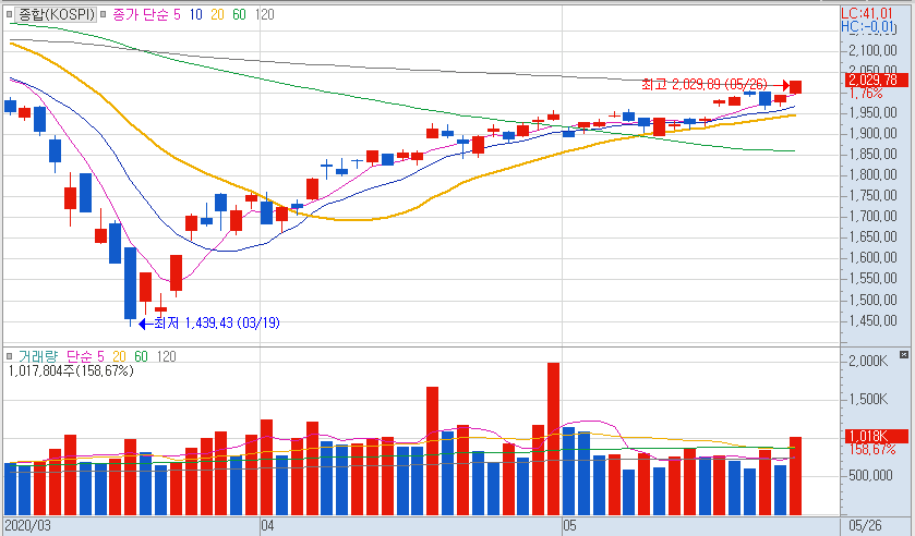 V자 반등을 하면서 코로나 사태에 대한 우려가 어느 정도 해소된 모습입니다.