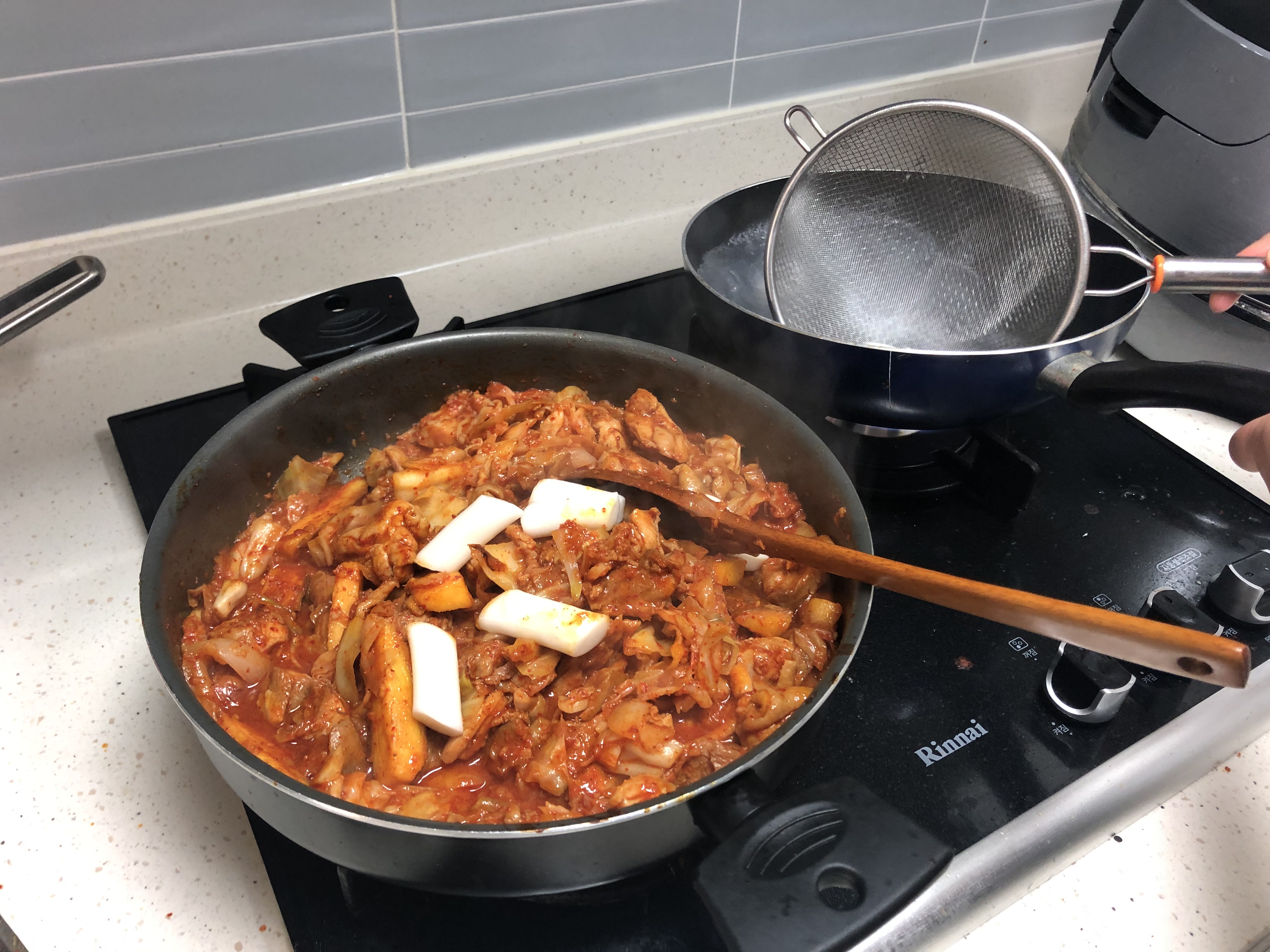 남은 닭갈비와 양념에 볶아서 맛있게 먹습니다.