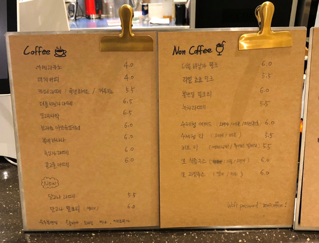 오늘은 콩고물 라테와 브라운 아인슈페너를 마셔보았습니다.