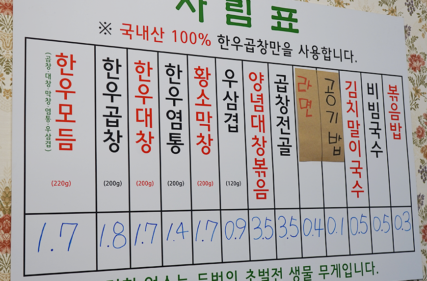 이곳은 당일 도축한 국내산 한우곱창만 사용한다고 합니다.
