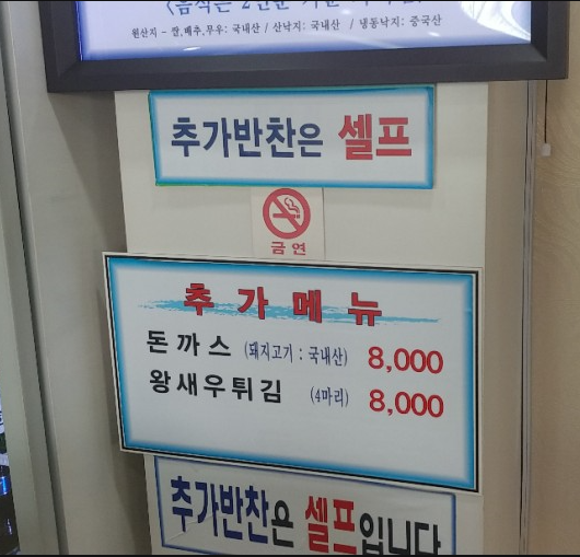 자리에 앉으면 자리에 바로 반찬이 세팅되고 이후 주문을 받습니다.