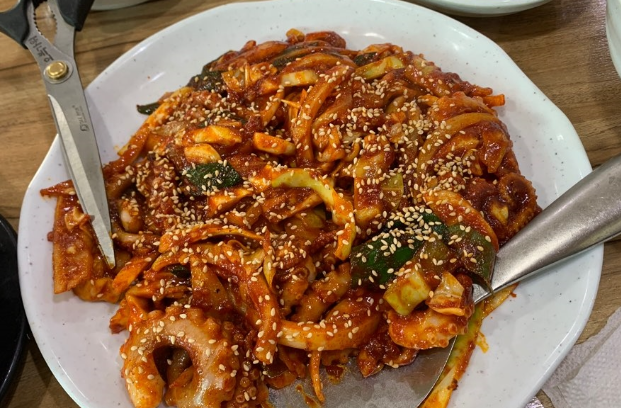 낙지는 통으로 볶아서 제공되기 때문에 알맞은 사이즈로 잘라서 먹으면 됩니다.
