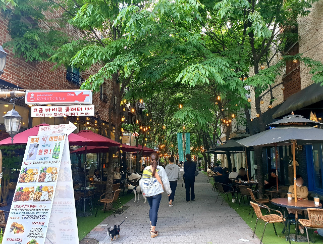 길거리 상가 1층에는 음식점, 옷가게, 카페를 주로 이루고 있었고