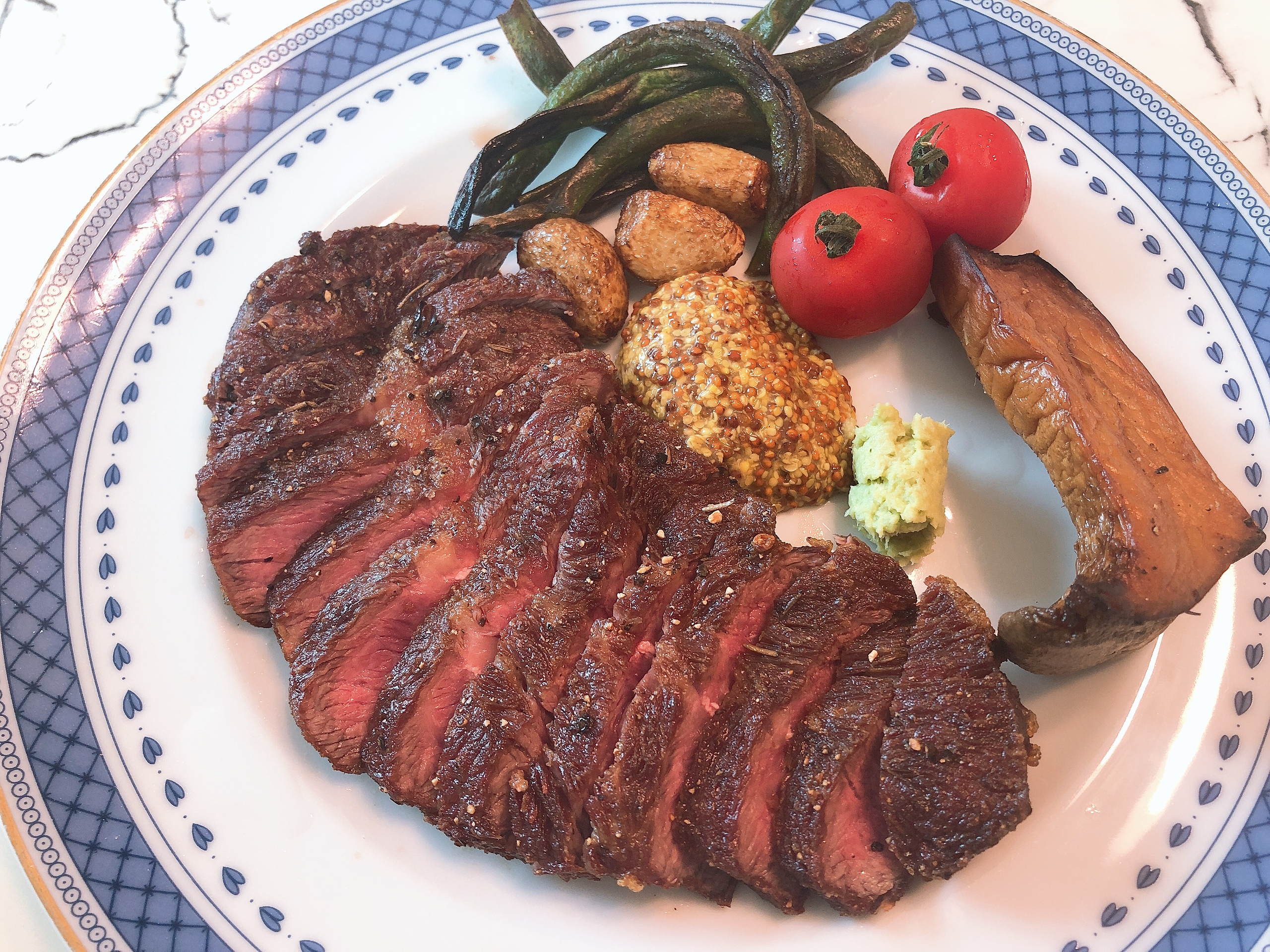 단순한 조화이지만 고유의 고기 맛을 느낄 수 있게 하며 굽기 조절은 없이 기본 미디엄으로 제공됩니다.