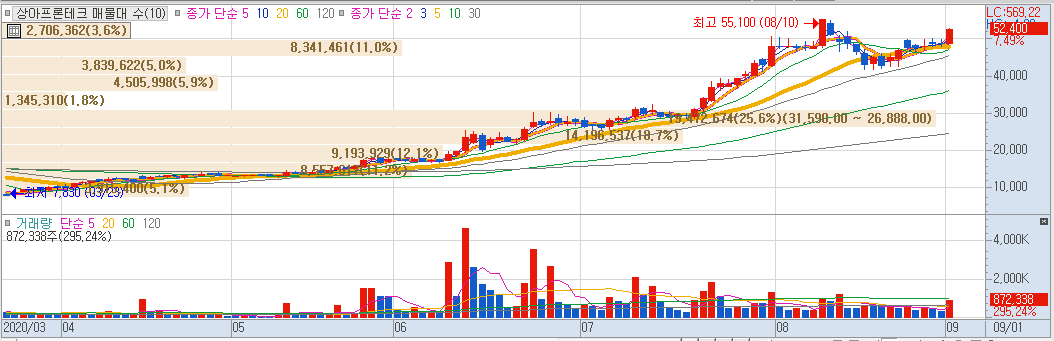 현재 가격은 52,400원이지만 60,000원 까지는 순조롭게 상승하지 않을까 예상해봅니다.