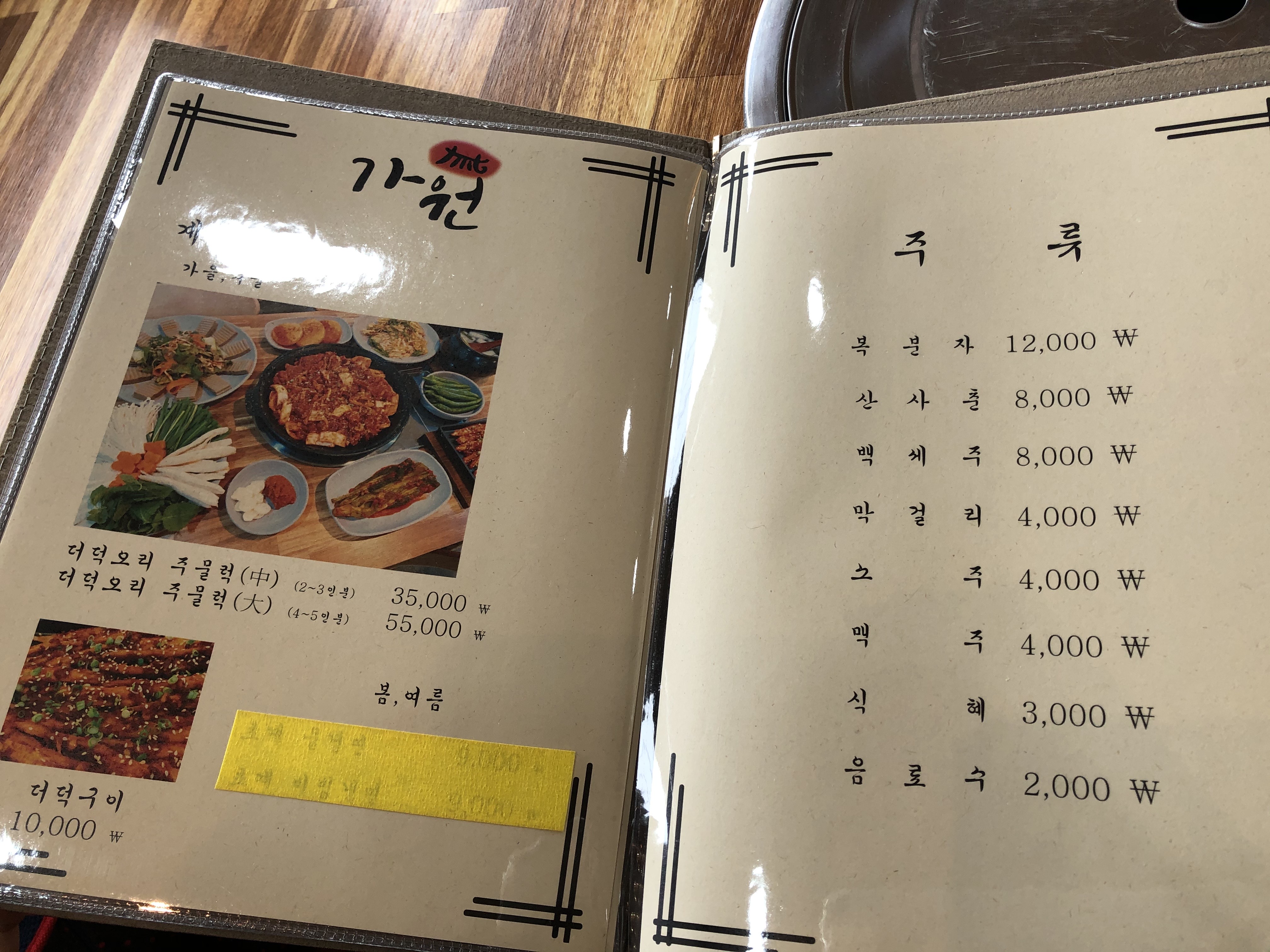 해물파전이 먹고 싶어 주문하려고 했으나 안되어 아쉬웠답니다.