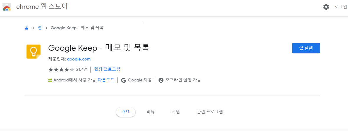 클릭하여 설치를 하고 나면 google keep이 설치된 것을 확인할 수 있습니다.