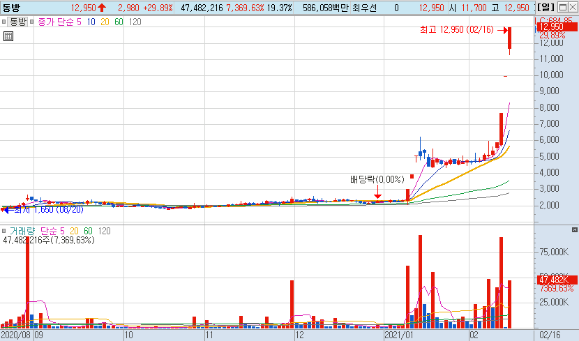 동방의 주가는 올해 초에만 하더라도 2,000원을 맴돌았습니다.