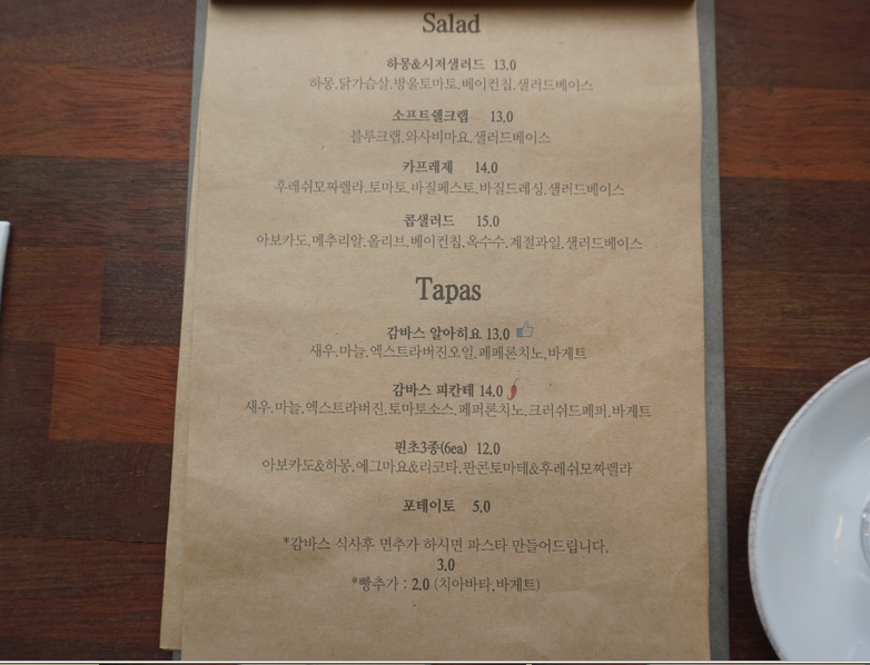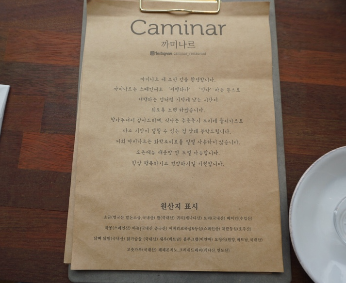 메뉴판을 보니 까미나르는 스페인어로 '여행하다', '걷다'라는 의미라네요