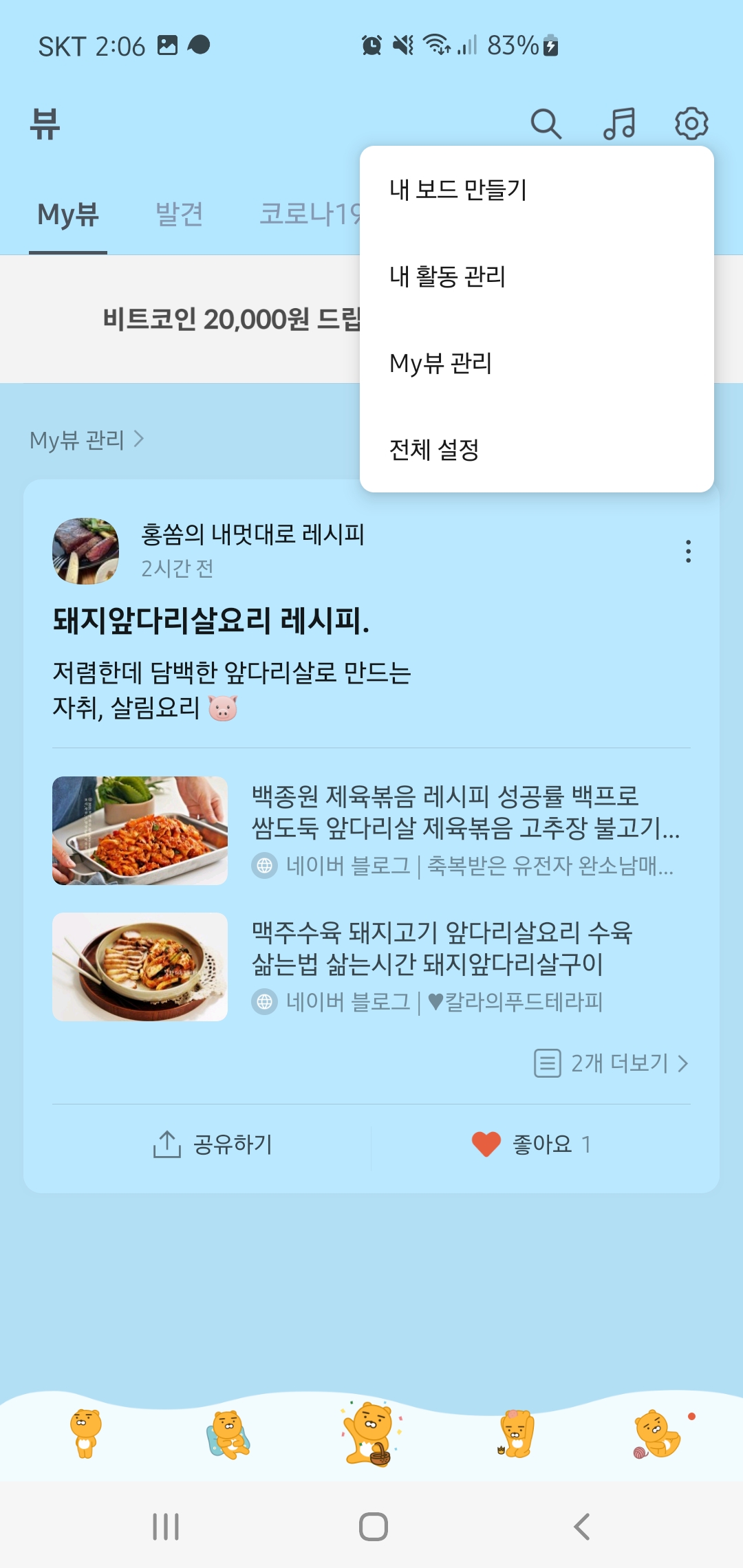 1. 카카오뷰 탭에서 설정을 클릭하고 내 보드 만들기를 클릭한다.