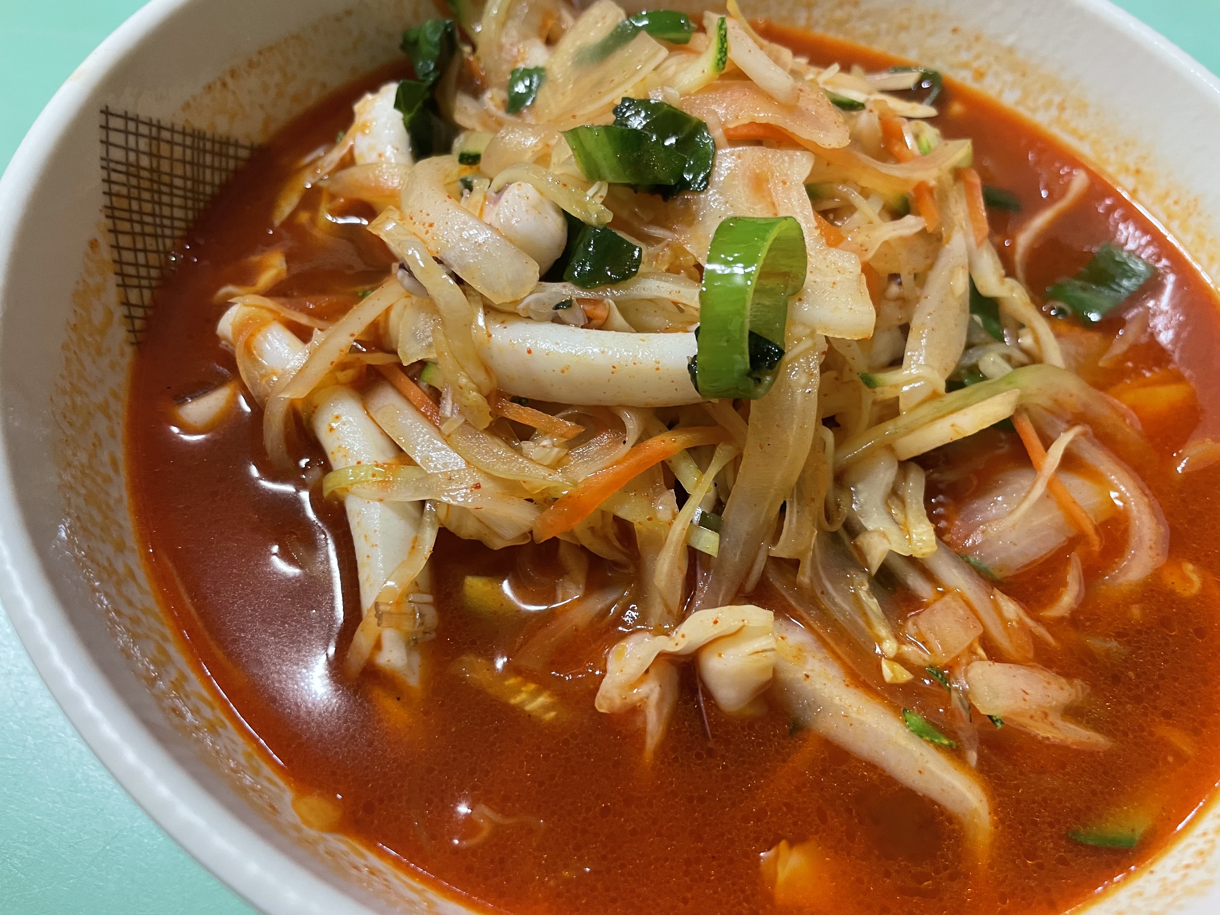 라면 국물에 짬뽕면이 들어갔다?? 이런 느낌도 있습니다.