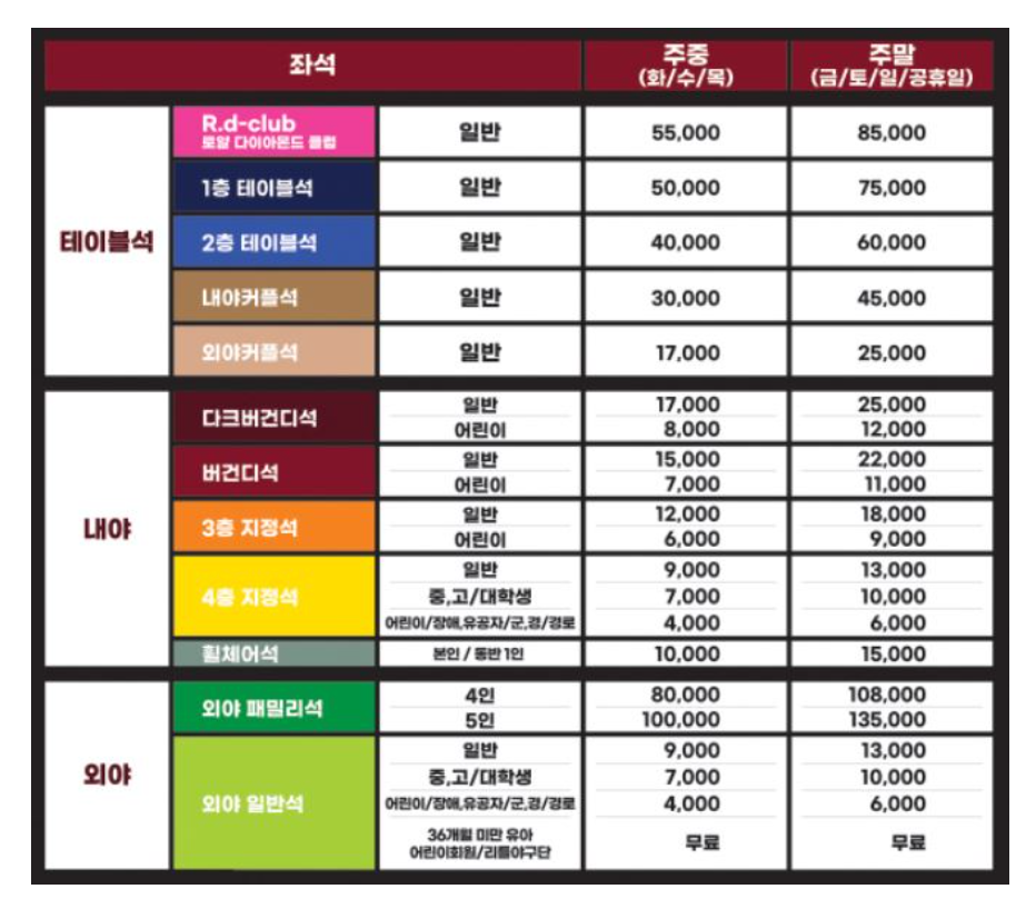 좌석배치도 및 가격
