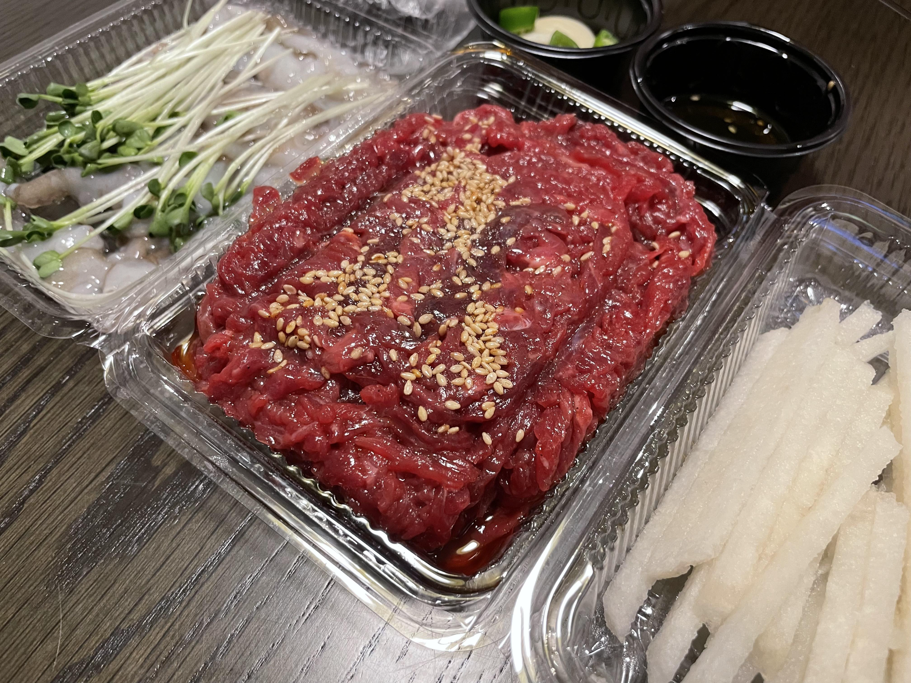 낙지탕탕이 육회를 포장 했는데요...