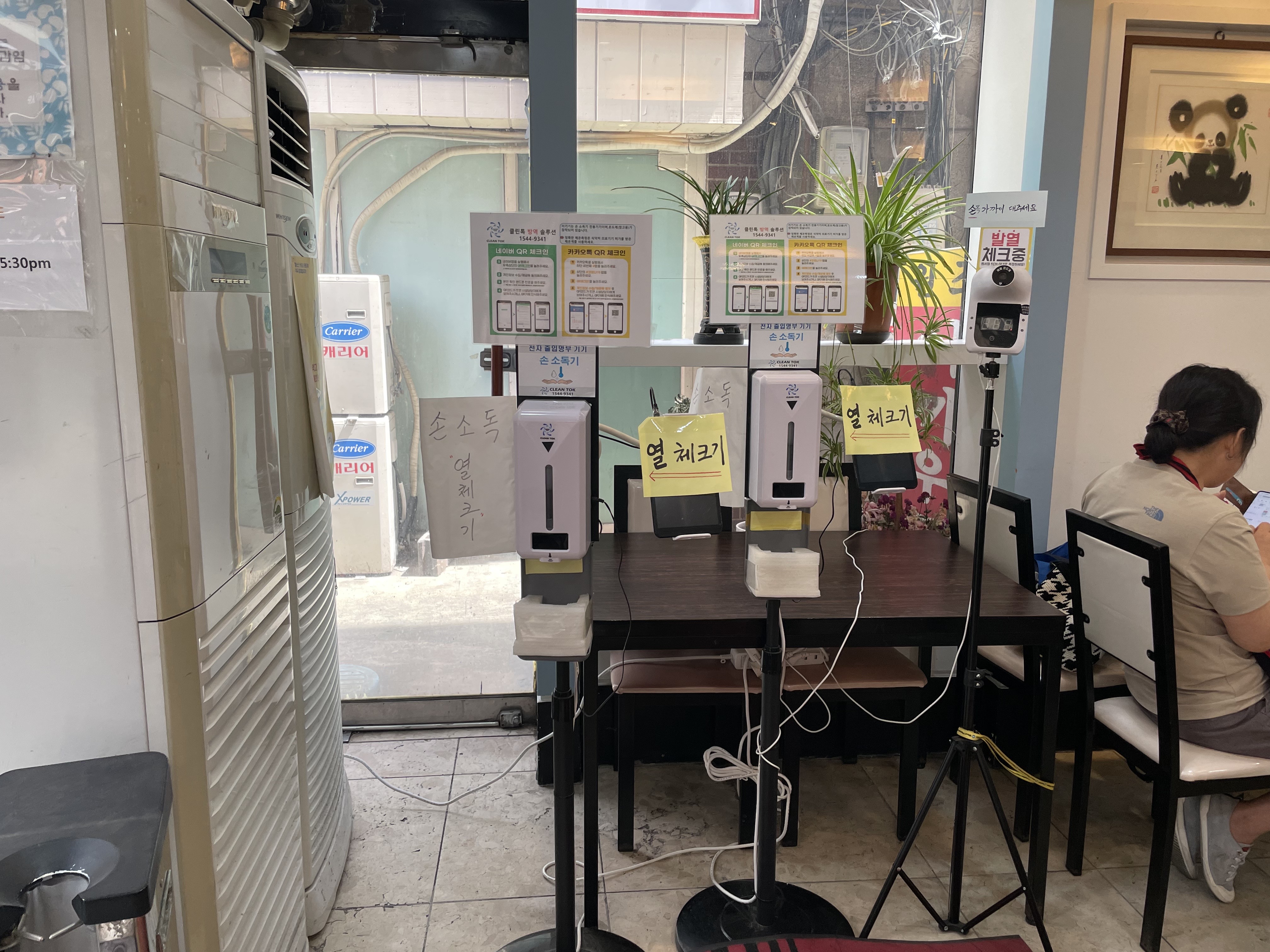 열체크, 손 소독하고 들어갔어요.