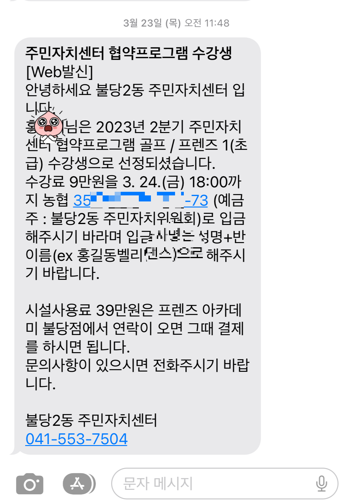 다행히 초급골프는 선착순이어서 광클 등록을 했어요.!