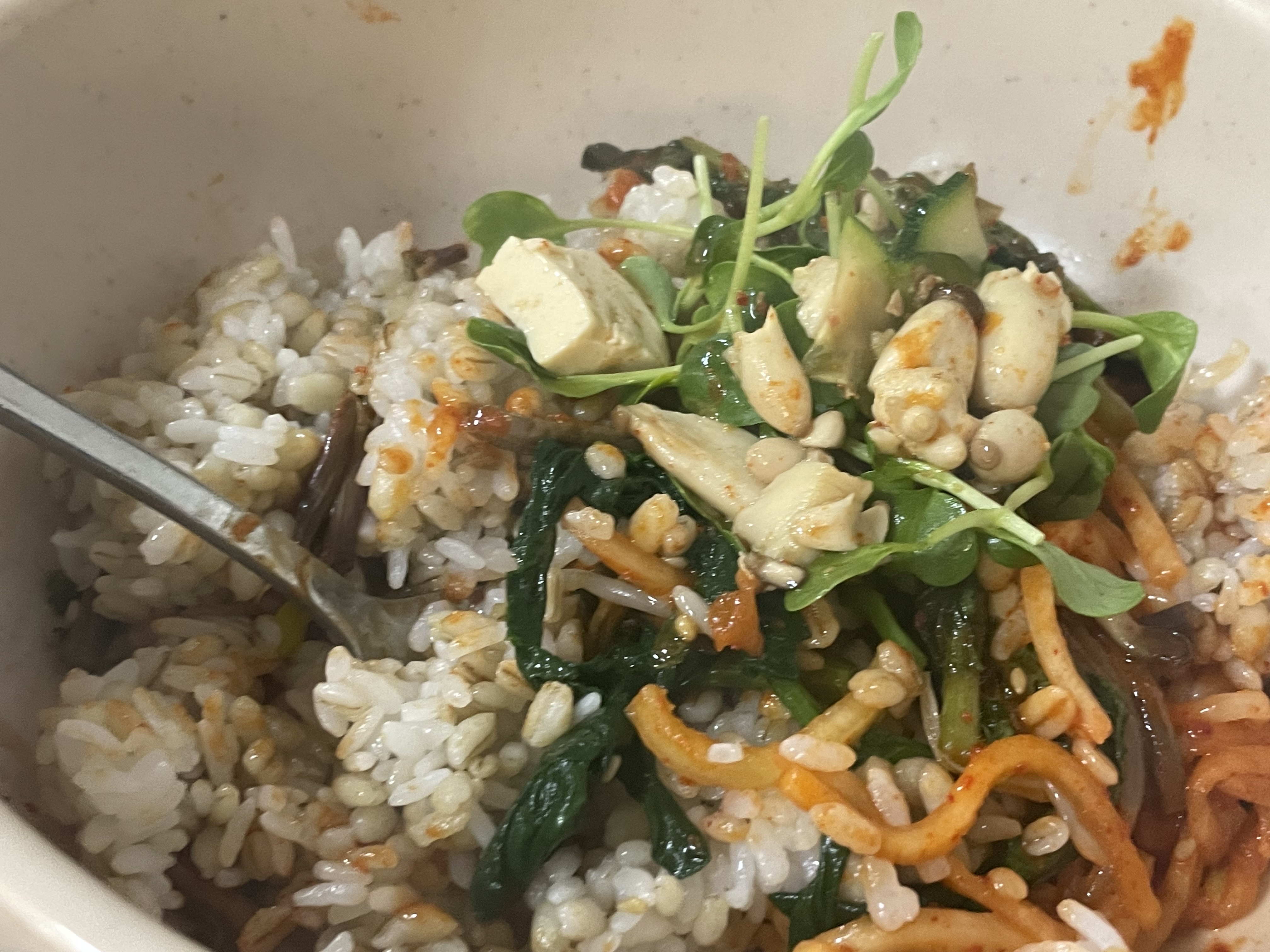 그 위에 입맛대로 나물을 골고루 올려주고~~~