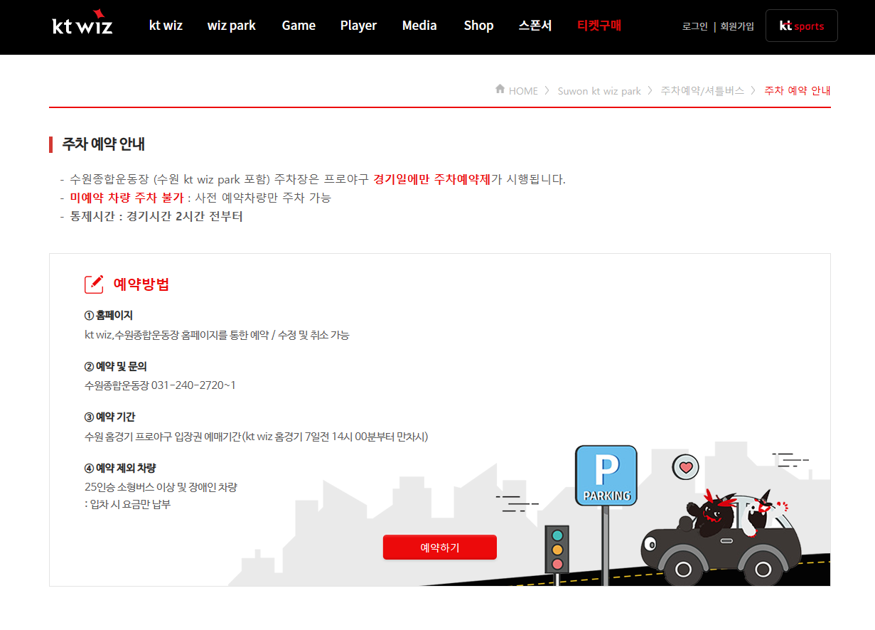 주차 관련 정보, 예매