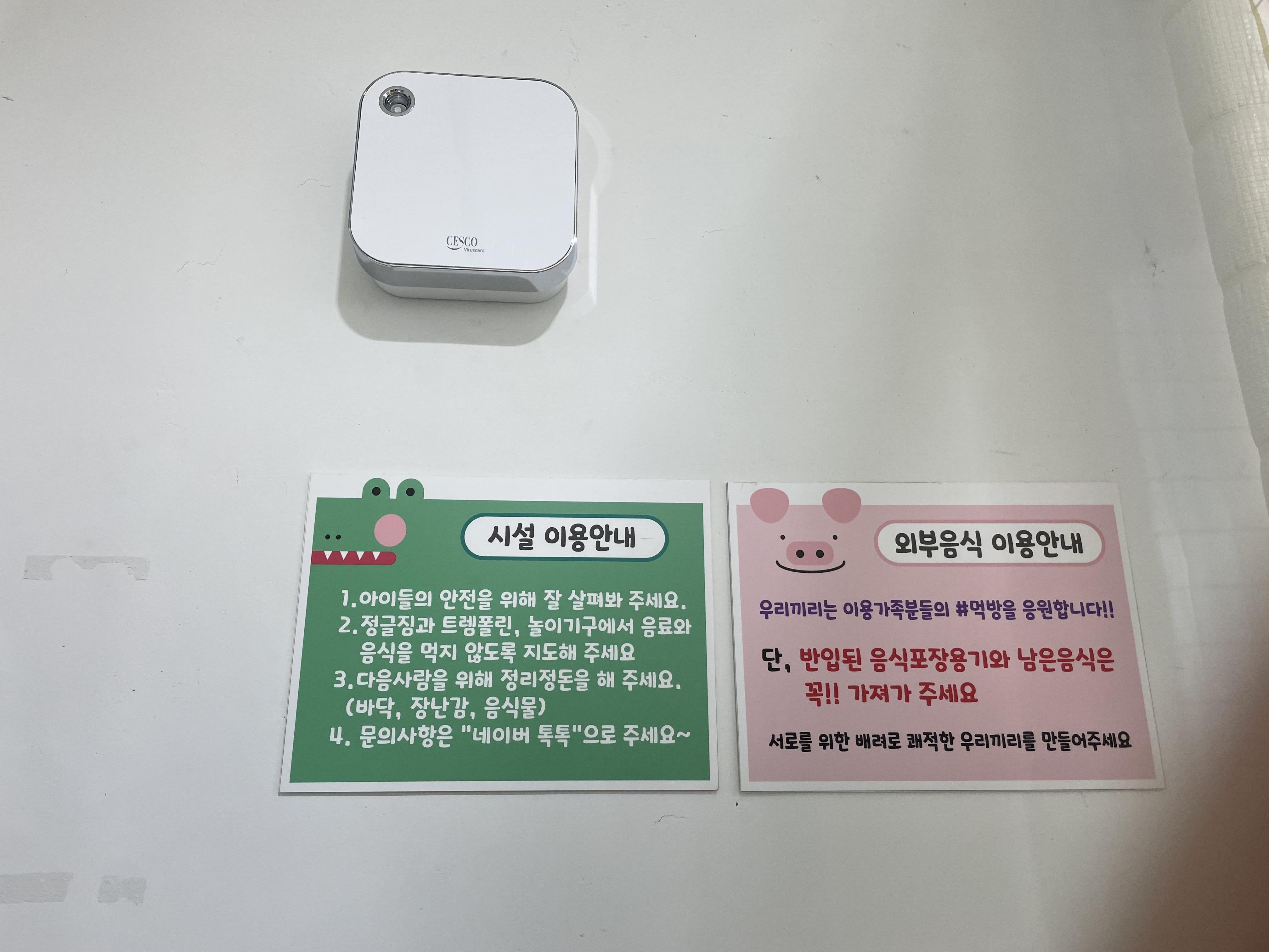 키즈카페가도 벽에 안내문이 잘 붙어있지만~