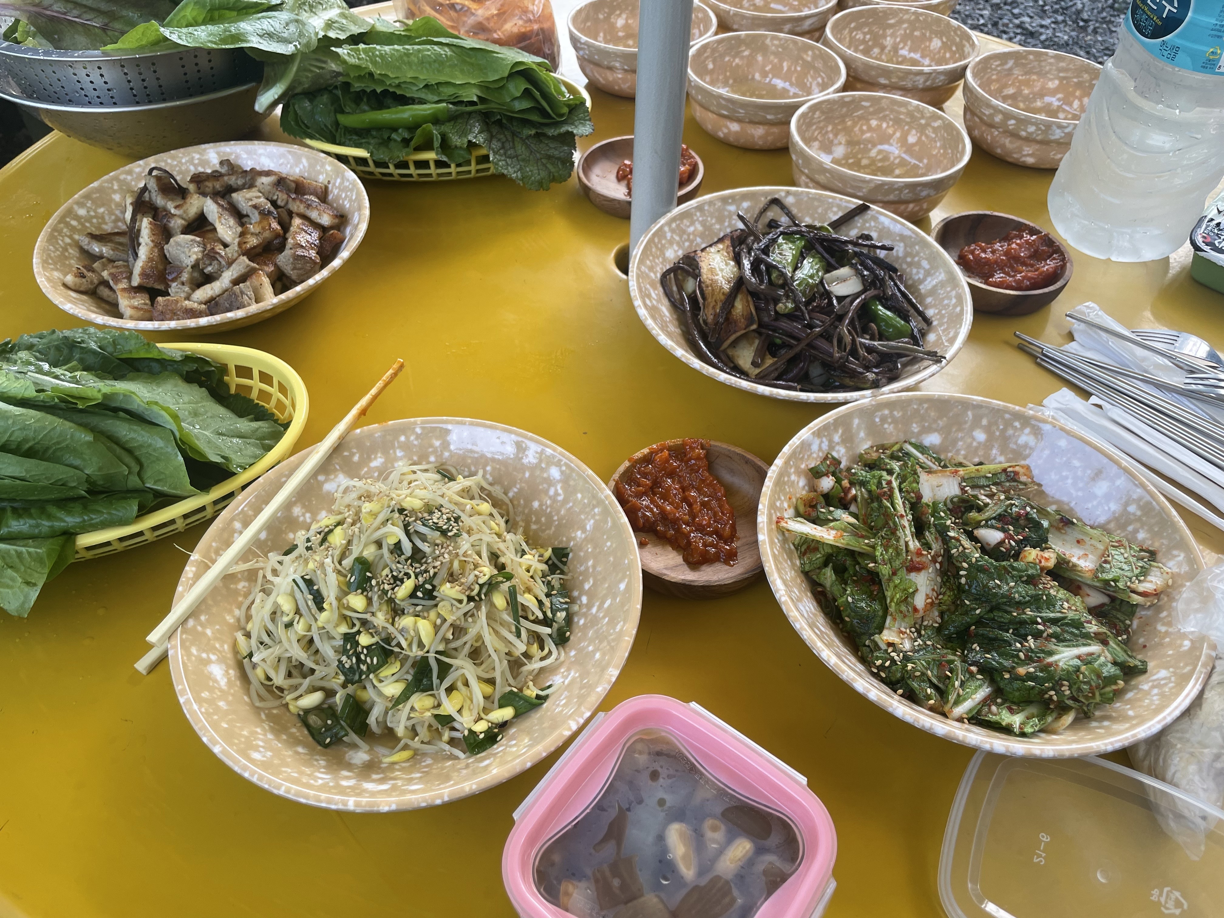 콩나물무침, 얼갈이배추 겉절이 무쳐내고