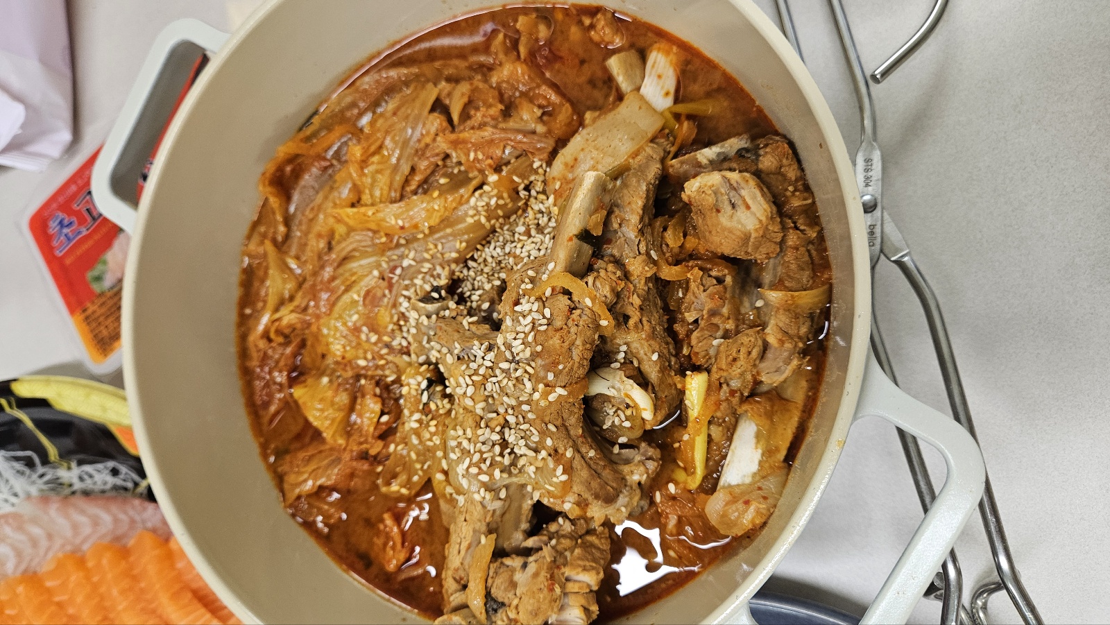 등갈비 김치찜 (미리 만들어놔도 됨, 내놓을 때 덥혀서 내놓음)