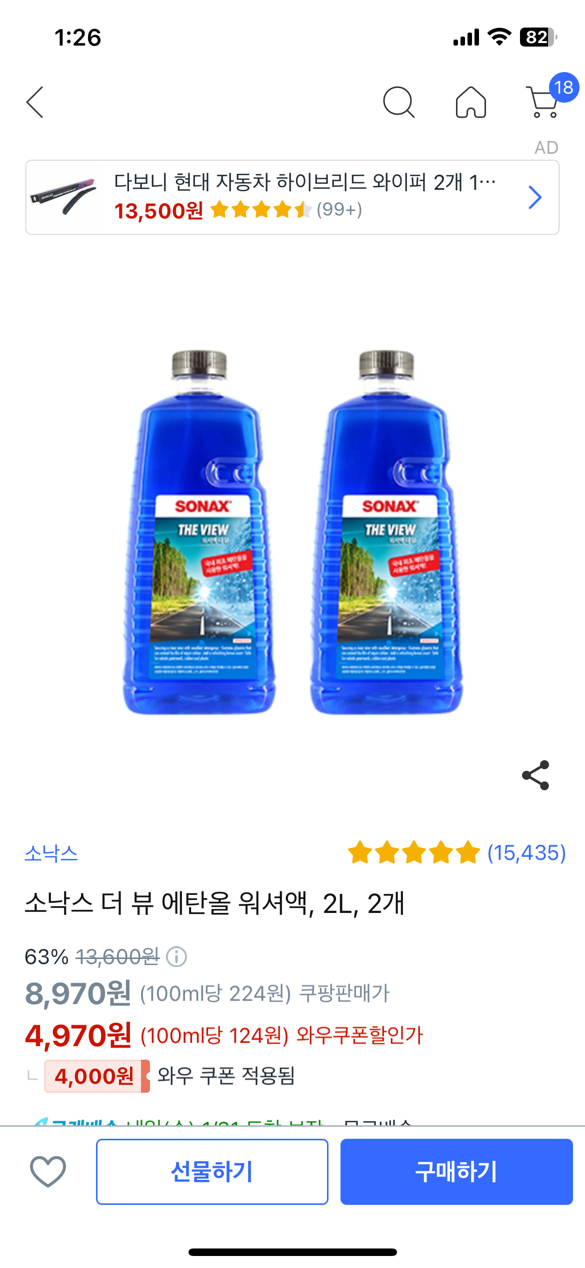 '소낙스워셔액'으로 구매하게 되었답니다 ㅋㅋ