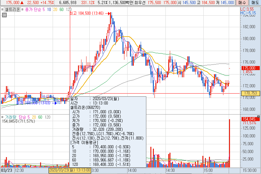 셀트리온제약 물타기에 성공하고 남은 돈은 셀트리온을 매수하기로 하였습니다.