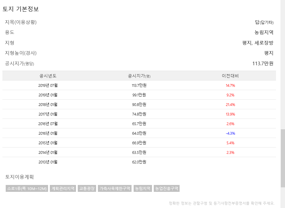 토지 기본정보도 함께 제공하고 있어서 실거래를 하기 전에 많은 도움이 될 것 같습니다.
